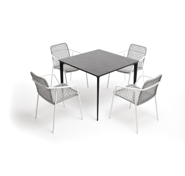 - Стол «Малага» со столешницей из HPL-пластика, размер столешницы - 900×900 мм, цвет - «серый гранит». Высота стола - 750 мм