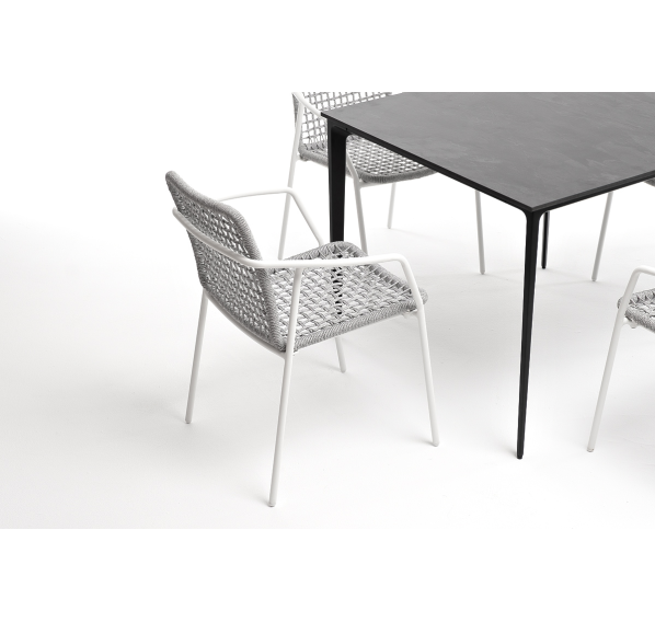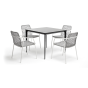- 4 плетеных стула «Тунис» из роупа, размером - 580×600×800 мм, цвет роупа - светло-серый, каркас - белый.