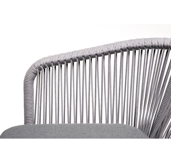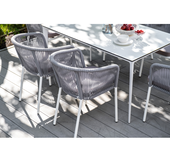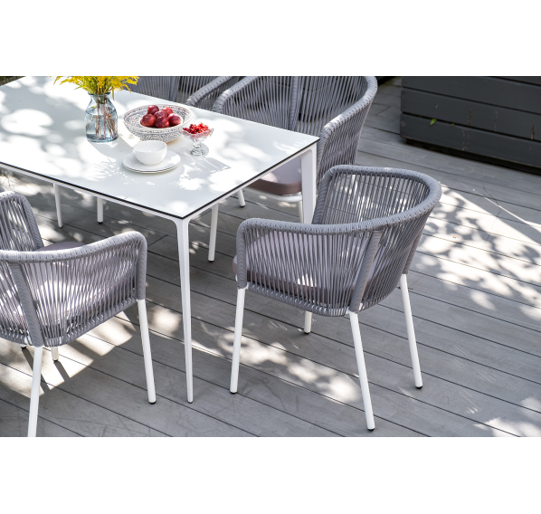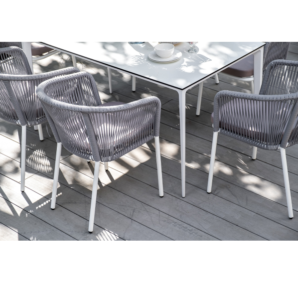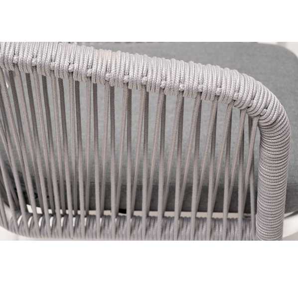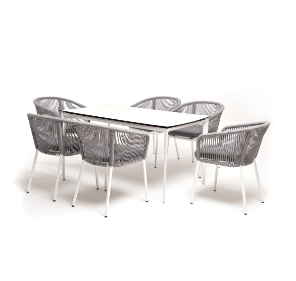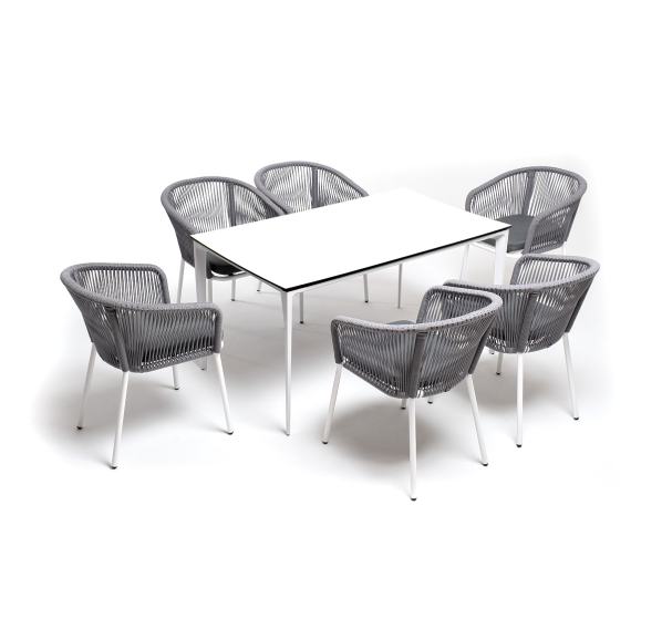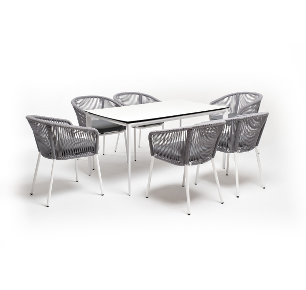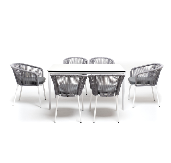 - 6 плетеных стульев «Марсель» из роупа, размером - 570×620×775 мм, цвет роупа - светло-серый, каркас - белый.