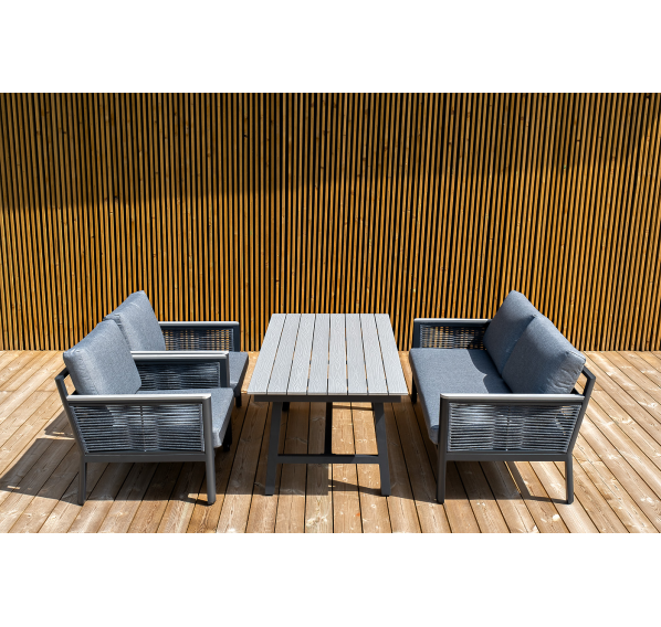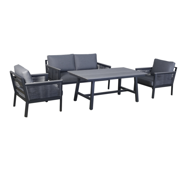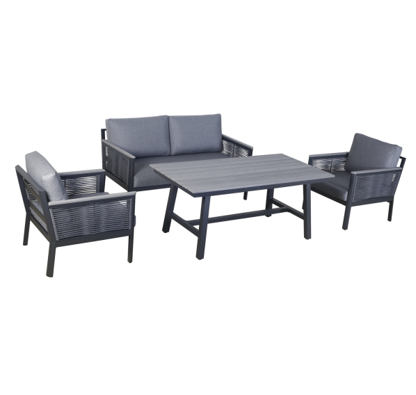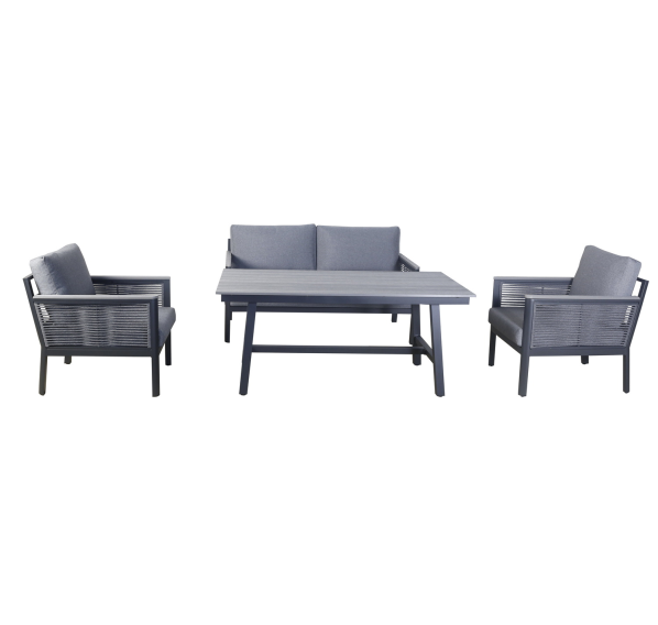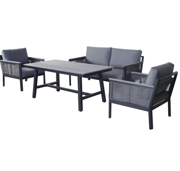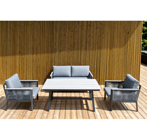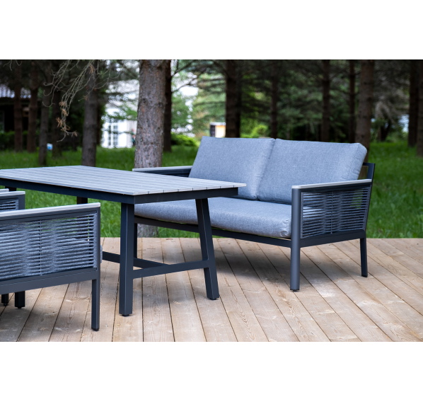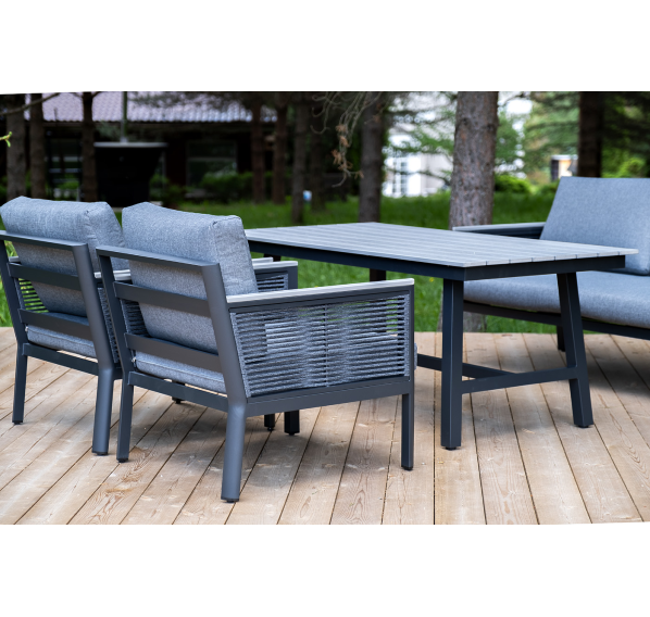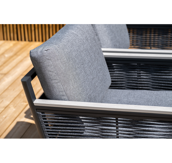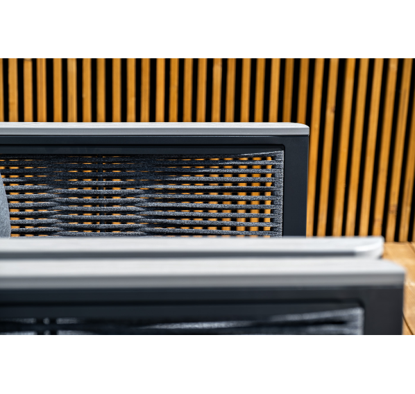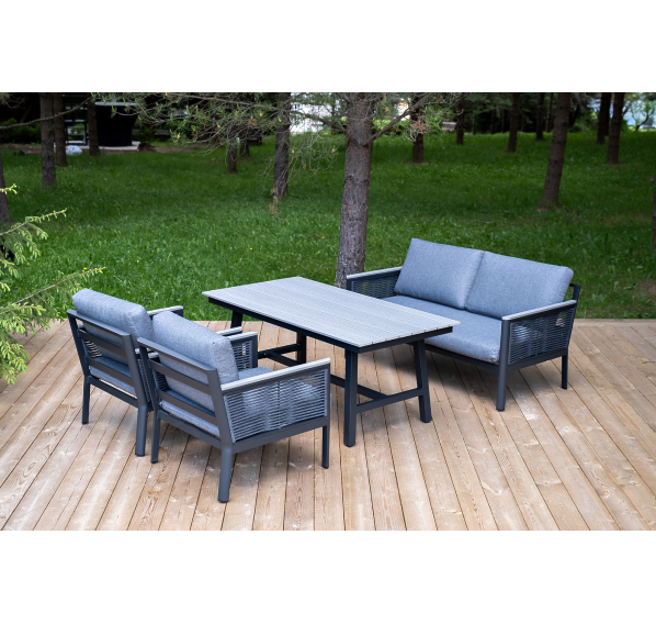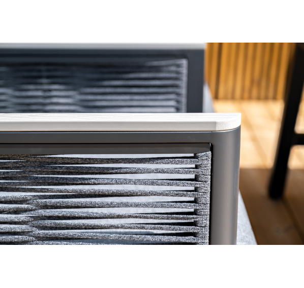 «Сан Ремо» лаунж-зона, алюминиевый каркас серый цвета, вручную оплетенный роупом серого цвета.