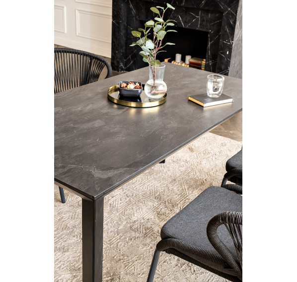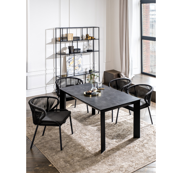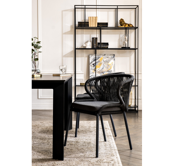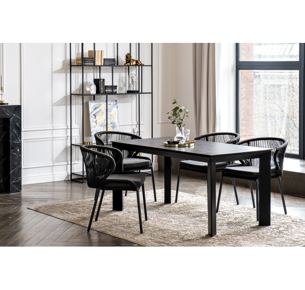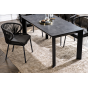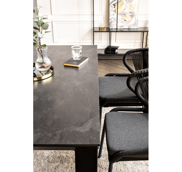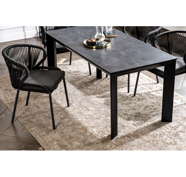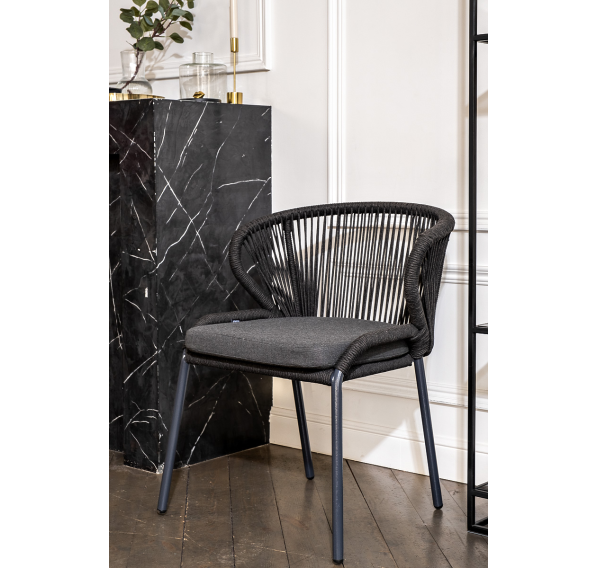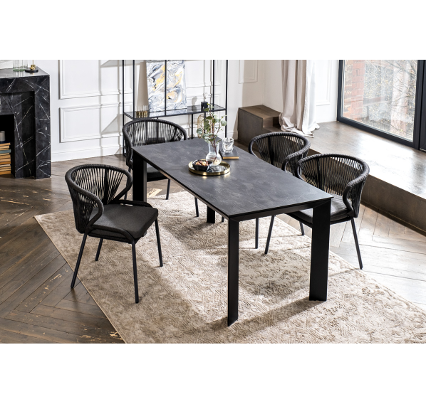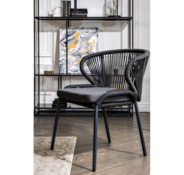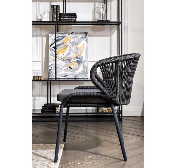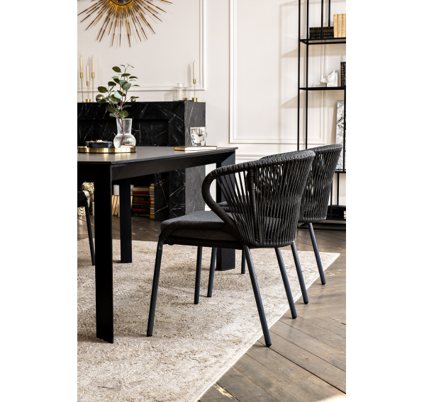 Стулья «Милан» выполнены из роупа темно-серого цвета, который гармонируют с общим дизайном комплекта. Размер каждого стула составляет 570×660×795 мм. Каркас из алюминия придает стульям легкость и прочность, а порошковое окрашивание защищает металл от коррозии и увеличивает срок службы мебели.