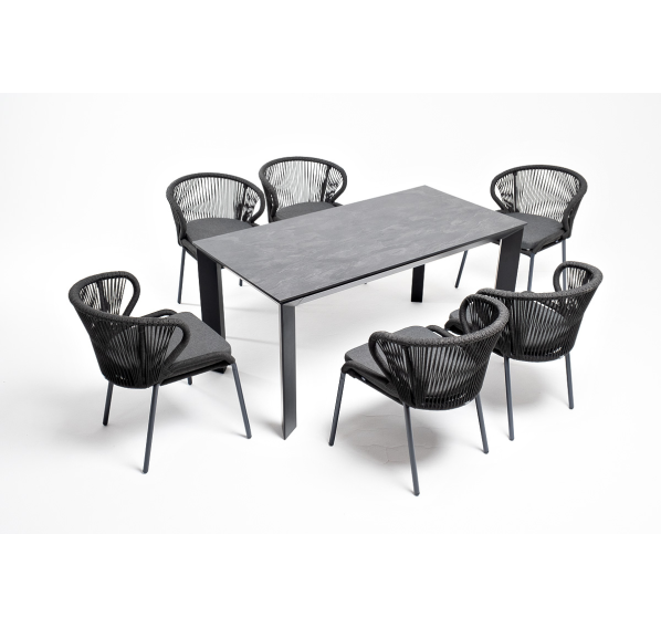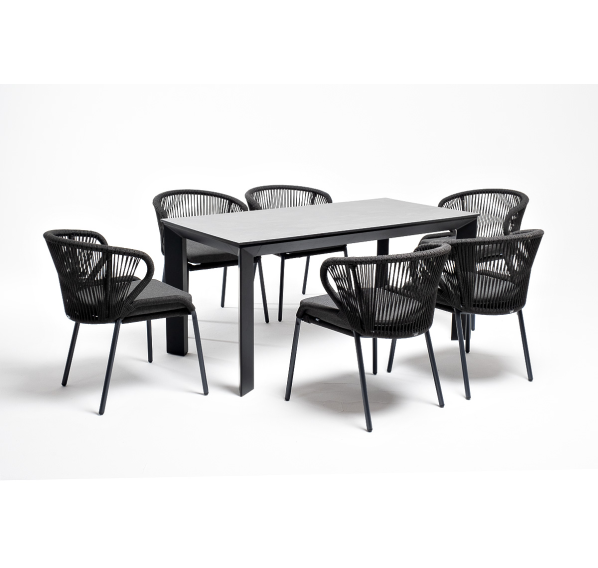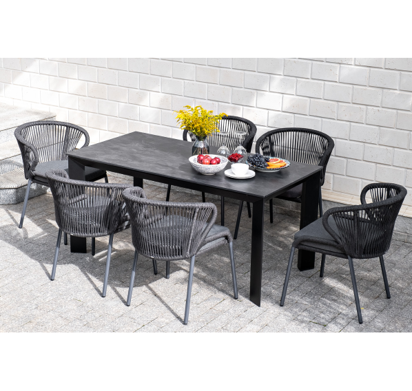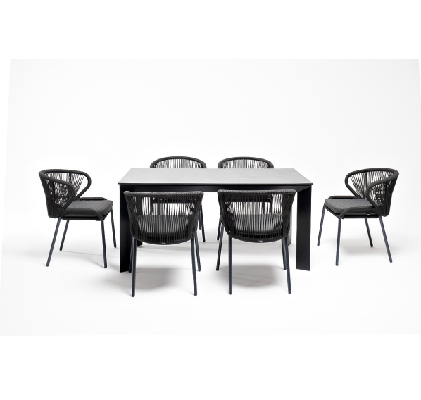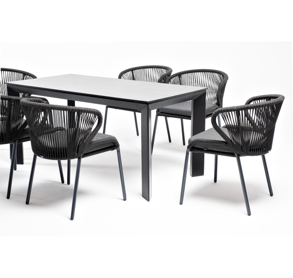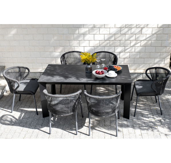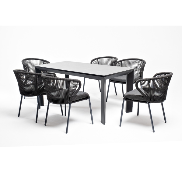 Обеденная группа «Венето» предназначена для комфортного размещения 6 персон и станет отличным дополнением к вашей территории для проведения трапезы с друзьями или семьей. Комплект из стола «Венето» и 6 стульев «Милан» выполнен в едином стиле, комбинируя качественные материалы и современный дизайн.