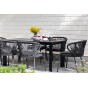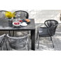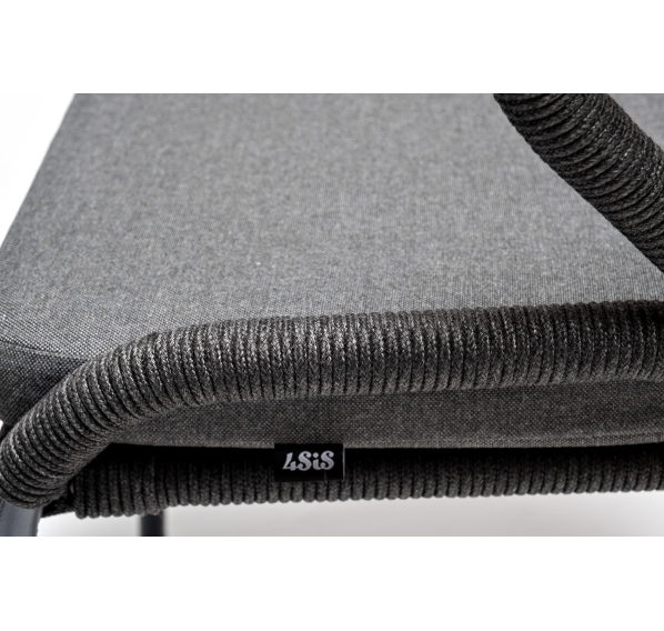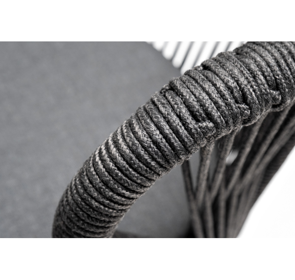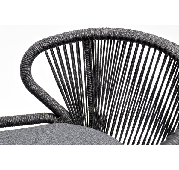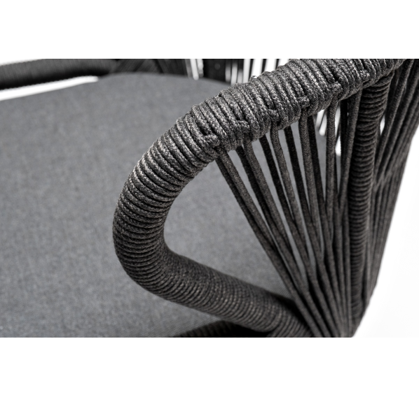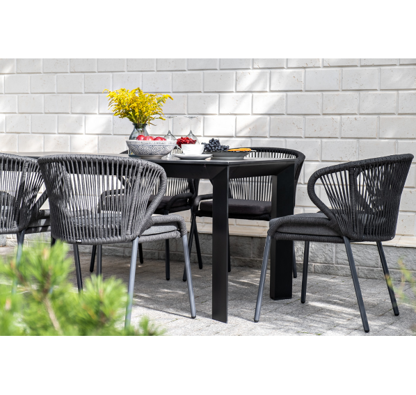 Стулья «Милан» выполнены из роупа темно-серого цвета, который гармонируют с общим дизайном комплекта. Размер каждого стула составляет 570×620×795 мм. Каркас из алюминия придает стульям легкость и прочность, а порошковое окрашивание защищает металл от коррозии и увеличивает срок службы мебели.