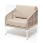 Плетеное кресло «Канны» идеально подходит для комфортного отдыха в саду или на балконе. Прочный каркас из алюминия окрашен в белый цвет порошковой износостойкой краской. Покрытие прочное, устойчивое к возникновению сколов и ржавчины.