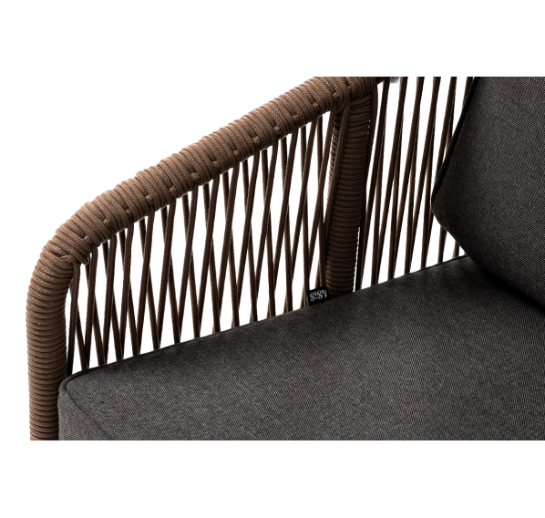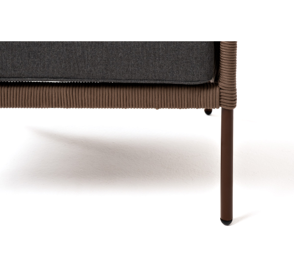 Коричневый (RAL8016) цвет каркаса и плетения придают продукту элегантный и современный вид, который легко впишется в любой экстерьер. Порошковая износостойкая краска гарантирует сохранение яркости цвета и защиту от ржавчины.