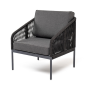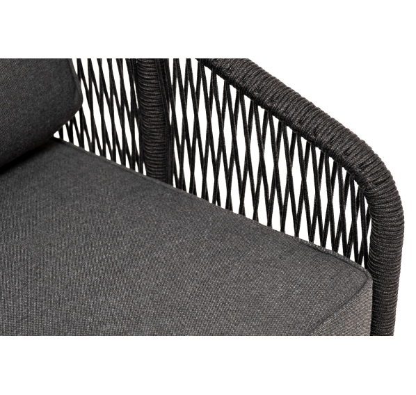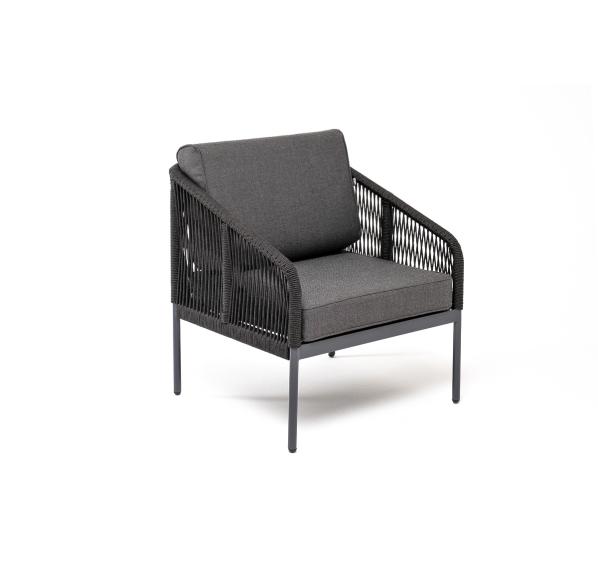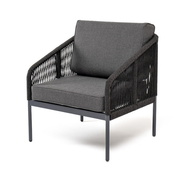 Плетеное кресло «Канны» идеально подходит для комфортного отдыха в саду или на балконе. Прочный каркас из алюминия окрашен в насыщенный темно-серый (RAL7024) цвет порошковой износостойкой краской. Покрытие прочное, устойчивое к возникновению сколов и ржавчины.