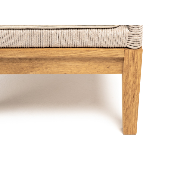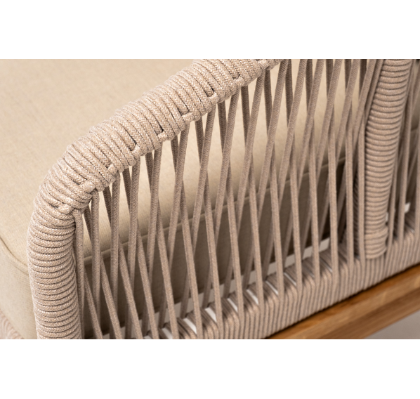 На боковинах - оплетка из синтетических лент, выполненных из полиэфирных волокон высокой прочности. Цвет плетения - бежевый. Основание - дуб.