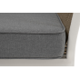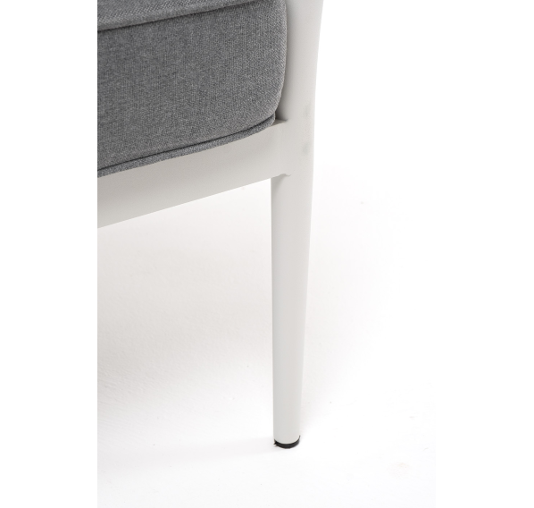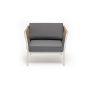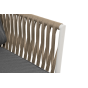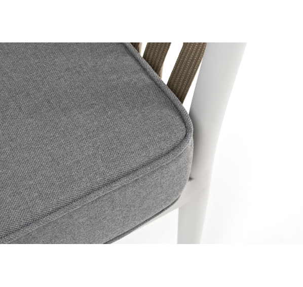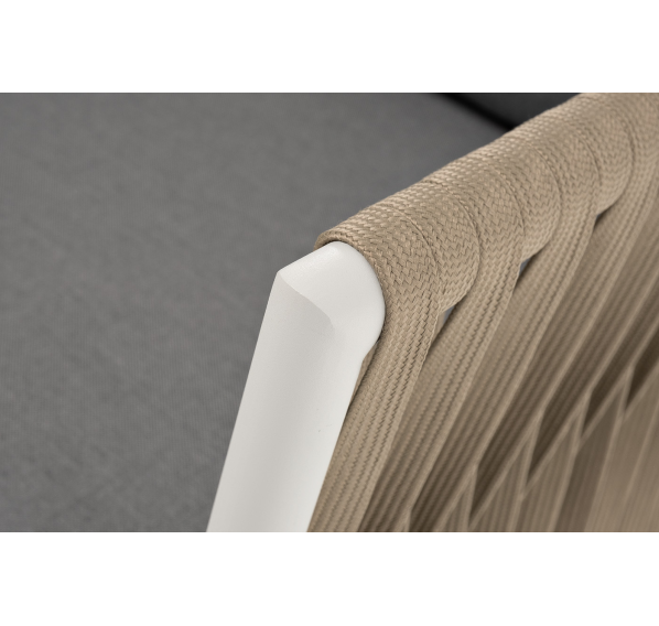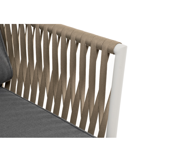 Кресло имеет алюминиевый каркас, окрашенный порошковой краской в светло-серый (RAL7035) цвет. Боковины каркаса вручную оплетены роупом - эластичными синтетическими лентами, изготовленными из высокопрочных полиэфирных волокон. Цвет оплетки - серо-коричневый.