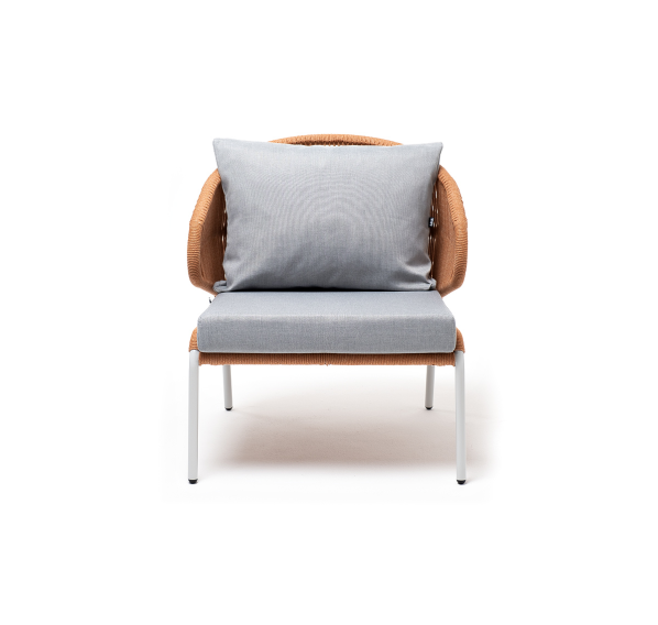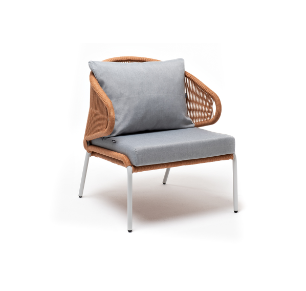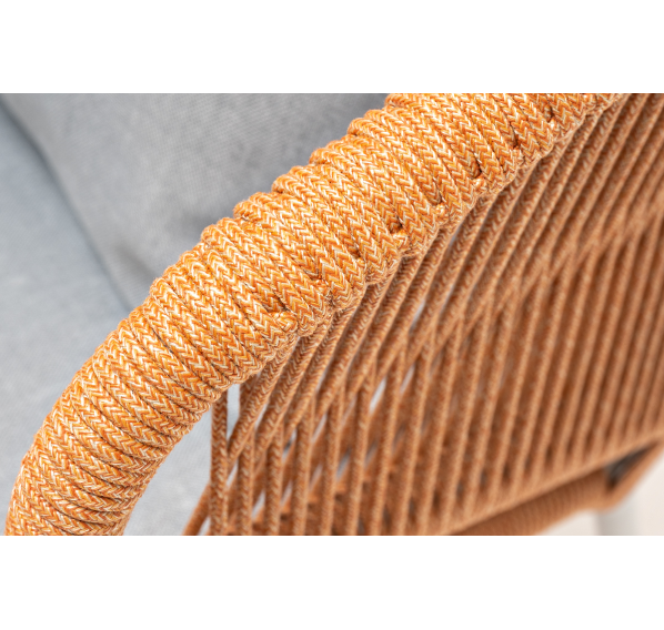 Изготовлен из алюминиевого каркаса, оплетенного вручную эластичными синтетическими лентами из высокопрочных полиэфирных волокон. Цвет каркаса - светло-серый (RAL7035), оплетки – оранжевый меланж.
