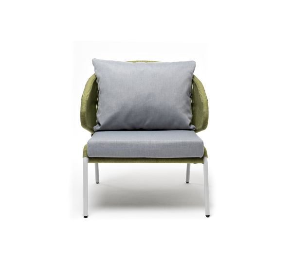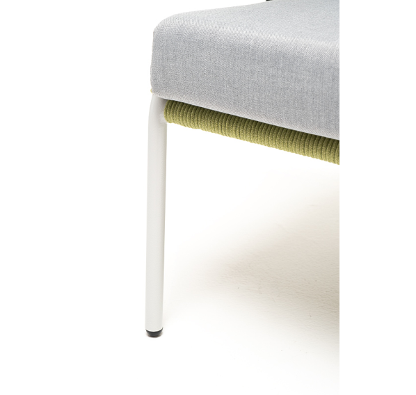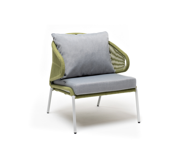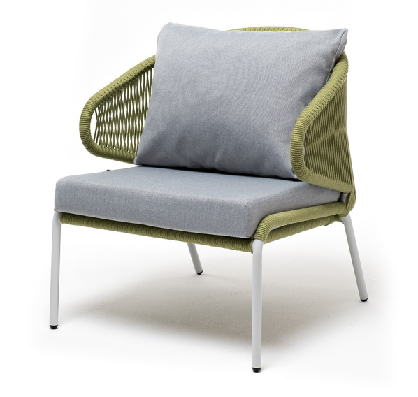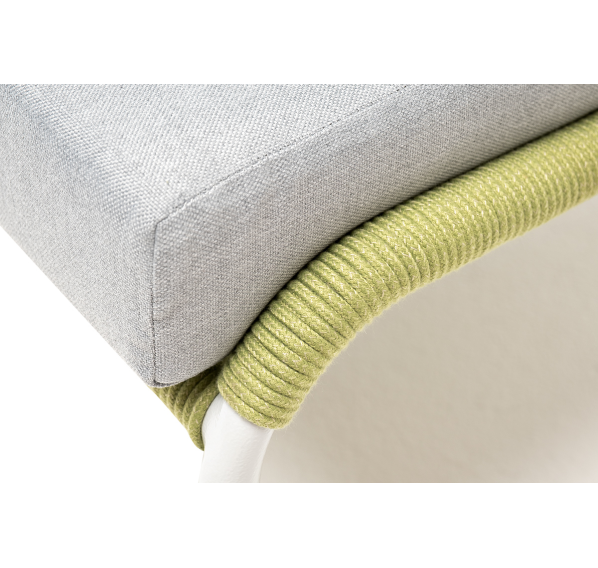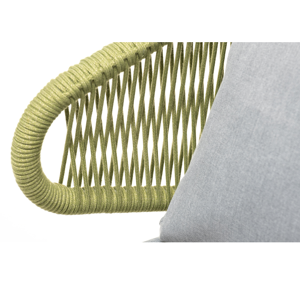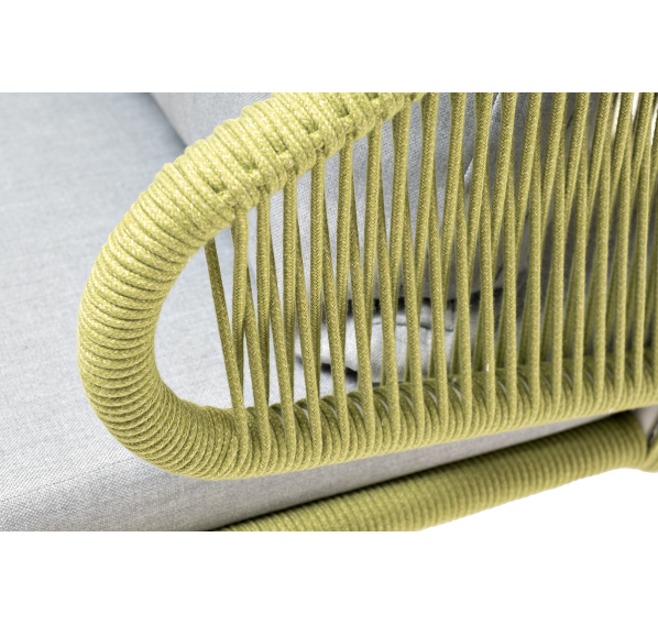 Изготовлен из алюминиевого каркаса, оплетенного вручную эластичными синтетическими лентами из высокопрочных полиэфирных волокон. Цвет каркаса - светло-серый (RAL7035), оплетки – салатовый меланж.