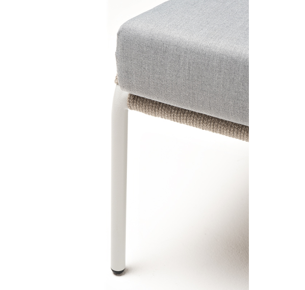 Изготовлен из алюминиевого каркаса, оплетенного вручную эластичными синтетическими лентами из высокопрочных полиэфирных волокон. Цвет каркаса - светло-серый (RAL7035), оплетки – серый меланж.
