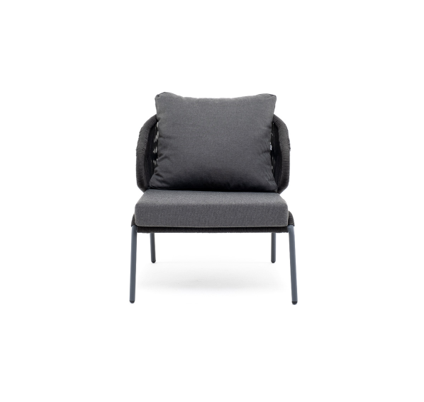 Изготовлен из алюминиевого каркаса, оплетенного вручную эластичными синтетическими лентами из высокопрочных полиэфирных волокон. Цвет каркаса - темно-серый (RAL7024), оплетки – темно-серый.