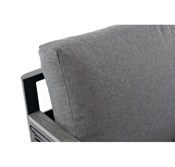 Садовое кресло идет в комплекте с двумя подушками со съёмными чехлами. Они выполнены в сером цвете. Изделия изготовлены из прочного полиэстера, плотностью 300гр/м2. Ткань имеет влагоотталкивающую пропитку.