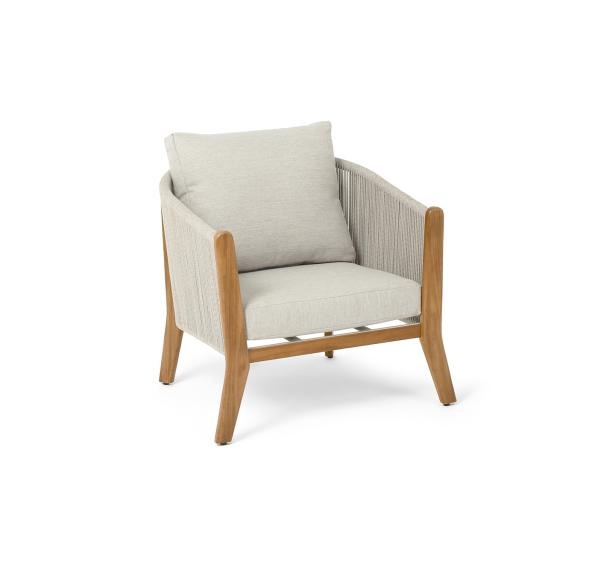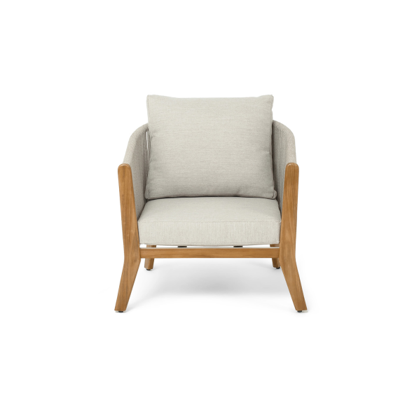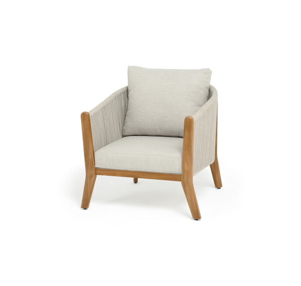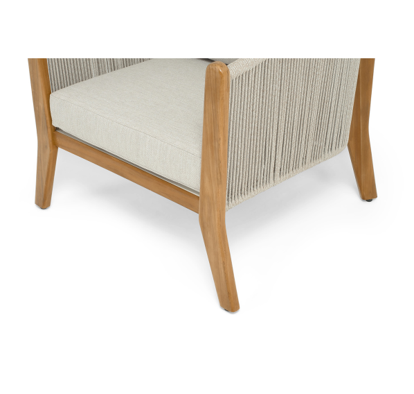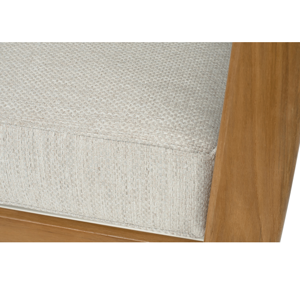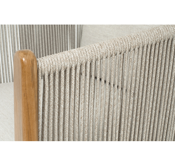 Основание кресла - тик, каркас из алюминия бежевого оттенка.