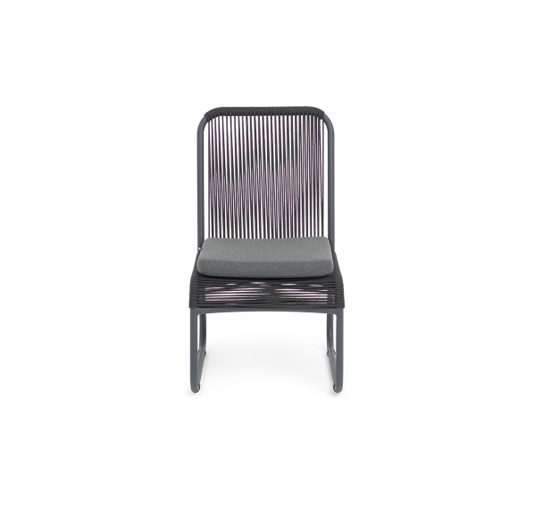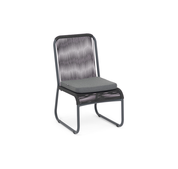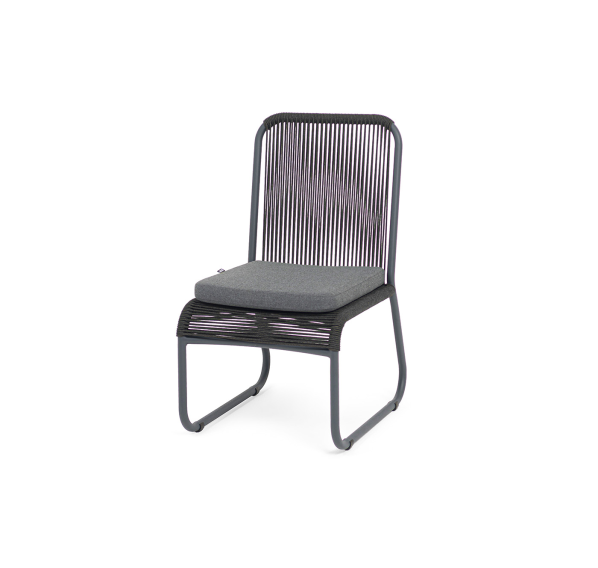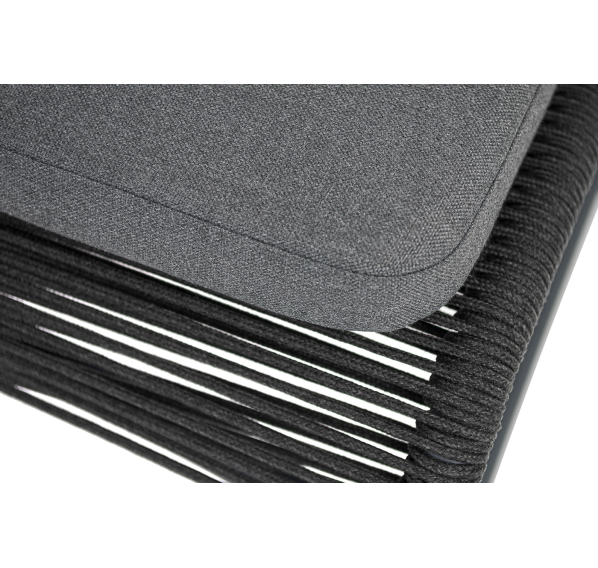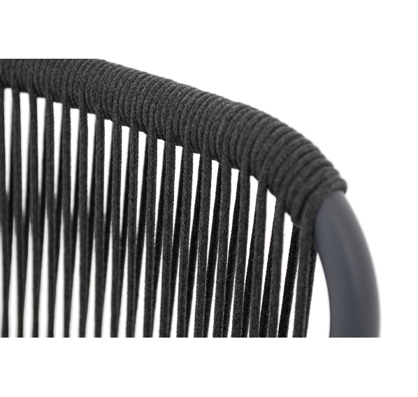 Выполнен из алюминиевого каркаса темно-серого (RAL7024) цвета. Оплетка - современный материал «роуп», которым каркас оплетался вручную.