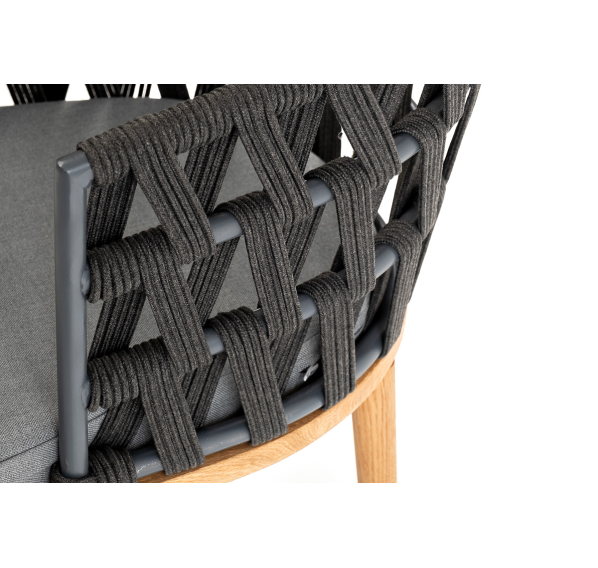 Плетеный стул «Диего» представляет собой удобное и стильное решение для дома или сада. Изготовленный из прочного дубового каркаса и оплетки из роупа темно-серого цвета, этот стул является отличным выбором для долгосрочного использования.