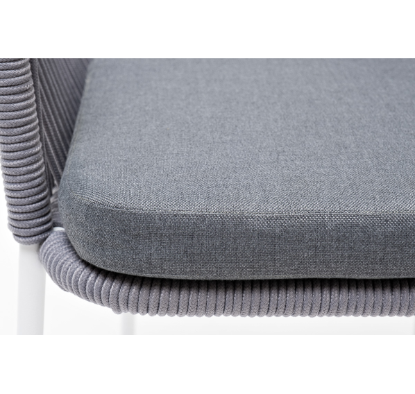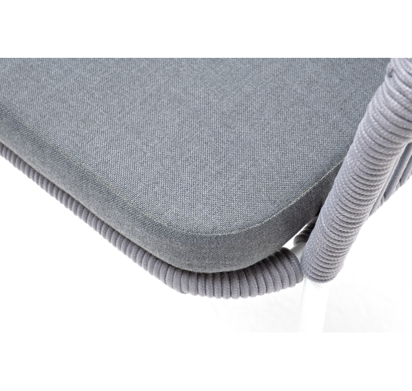 Подушка в комплекте со стулом выполнена из полиэстера 100% плотностью 300гр/м2 с влагоотталкивающей пропиткой светло-серого цвета. Это надежный и прочный материал, который легко очищается и устойчив к неблагоприятным погодным условиям.