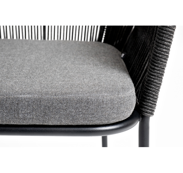Подушка в комплекте со стулом выполнена из полиэстера 100% плотностью 300гр/м2 с влагоотталкивающей пропиткой. Это надежный и прочный материал, который легко очищается и устойчив к неблагоприятным погодным условиям.