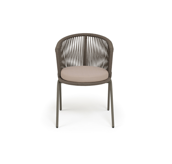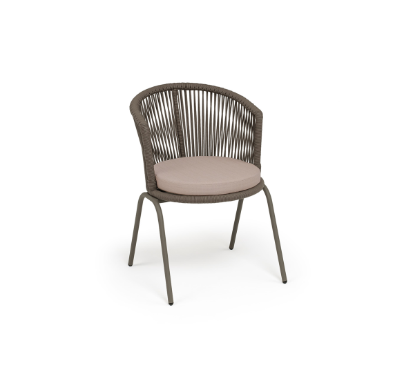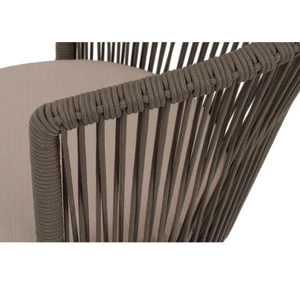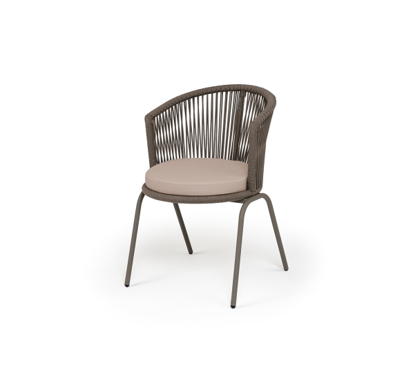 Выполнен из стального каркаса, окрашенного в бежево-серый (RAL7006) цвет. Оплетка - современный материал «роуп», которым каркас оплетался вручную.