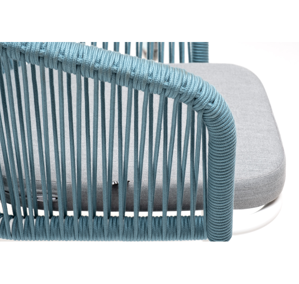 Выполнен из алюминиевого каркаса, окрашенного в светло-серый (RAL7035) цвет. Оплетка - современный материал «роуп», которым каркас оплетался вручную.