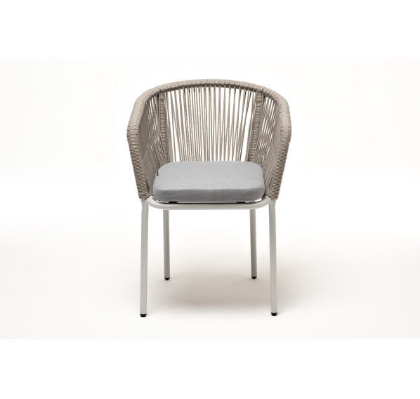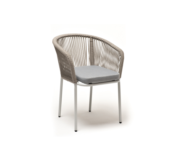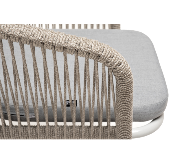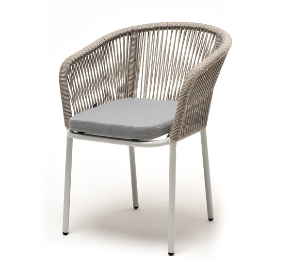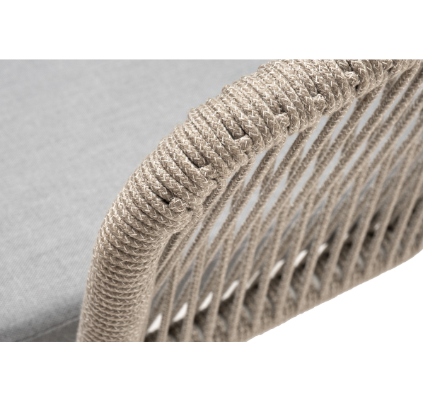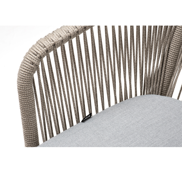 Выполнен из алюминиевого каркаса, окрашенного в светло-серый (RAL7035) цвет. Оплетка - современный материал «роуп», которым каркас оплетался вручную.
