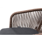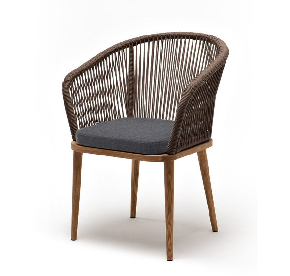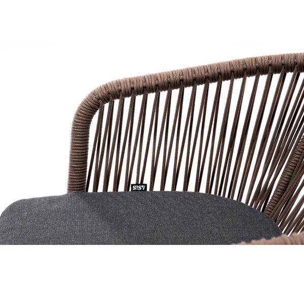 Каркас выполнен из натурального дерева. Оплетка выполнена вручную современным материалом - роупом. Это эластичные синтетические веревки из высокопрочных полиэфирных волокон, предназначенные для изготовления мебели. Цвет оплетки - коричневый.