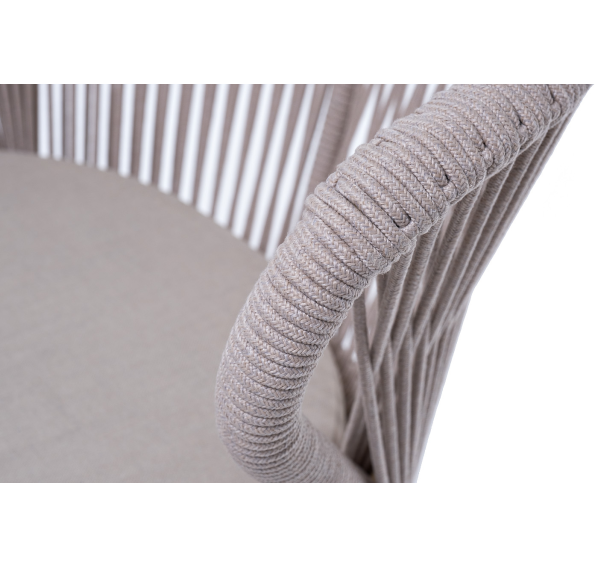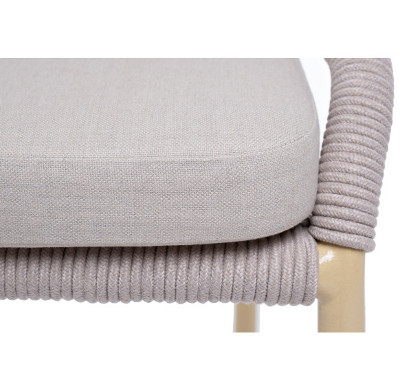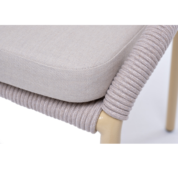 Изготовлен из алюминиевого каркаса, оплетенного вручную эластичными синтетическими лентами из высокопрочных полиэфирных волокон (роуп круглый). Цвет каркаса - бежевый (RAL1001), оплетки - бежевый.