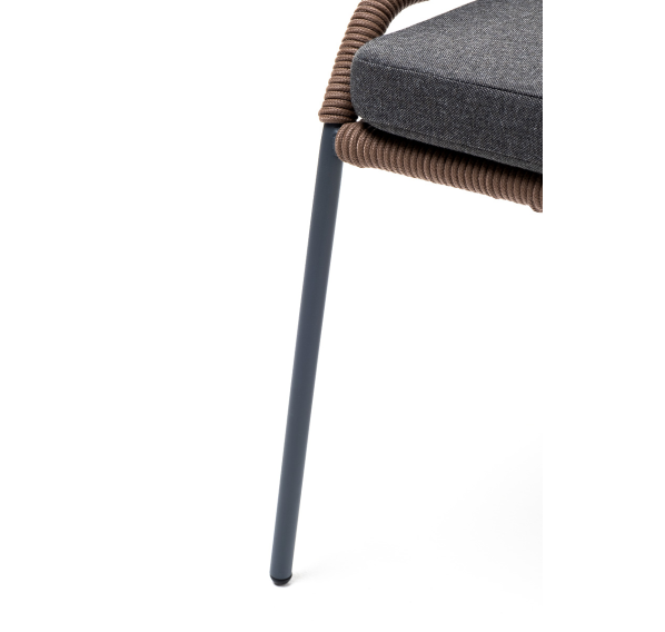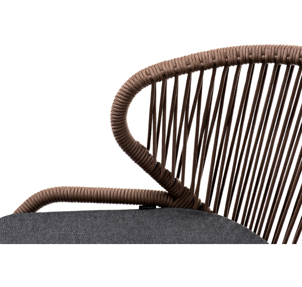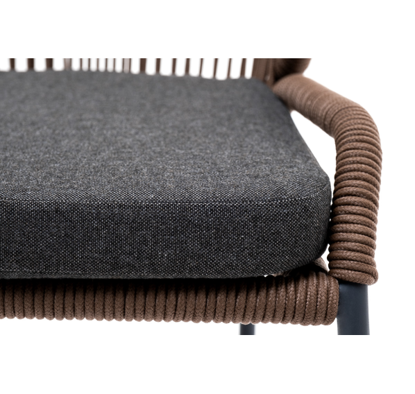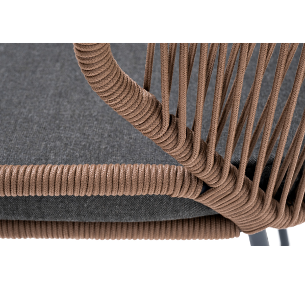 Изготовлен из алюминиевого каркаса серого (RAL7022) цвета, оплетенного вручную эластичными синтетическими лентами из высокопрочных полиэфирных волокон (роуп круглый). Цвет оплетки - коричневый.