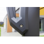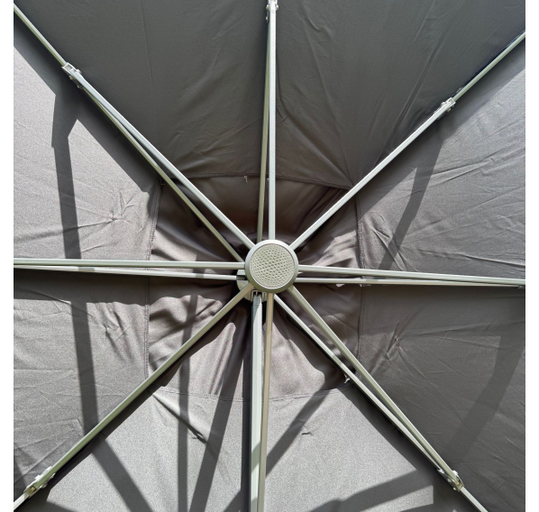 Уличный зонт SKY BLACK оснащён механизмом поворота на 360 градусов, что позволяет легко регулировать его положение в зависимости от солнечного света или направления ветра.